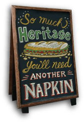 Originating from the Gulf Coast of Louisiana, there are many stories as to the origin of the po’ boy. One theory claims that “po’ boy” was coined in a New Orleans restaurant. In 1929, during a four-month strike against the streetcar company, restaurant owners in the French Quarter served the strikers free sandwiches, and would jokingly refer to these men as Poor Boys, or in the shortened Louisiana dialect, pronouncing it Po’Bo’s.