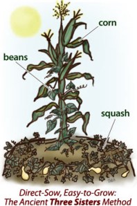 Native Americans had been cultivating and using beans in their culinary traditions long before the arrival of European settlers along with maize and squash, using the Three Sisters method of farming. The beans, maize and squash were planted interdependently; the beans grew up the tall stalks of the maize, while the squash spread out at the base of the three plants and provided protection and support for the root systems.
