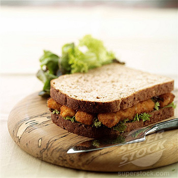 Breaded North Sea Pollock fingers, tartare sauce in white bloomer